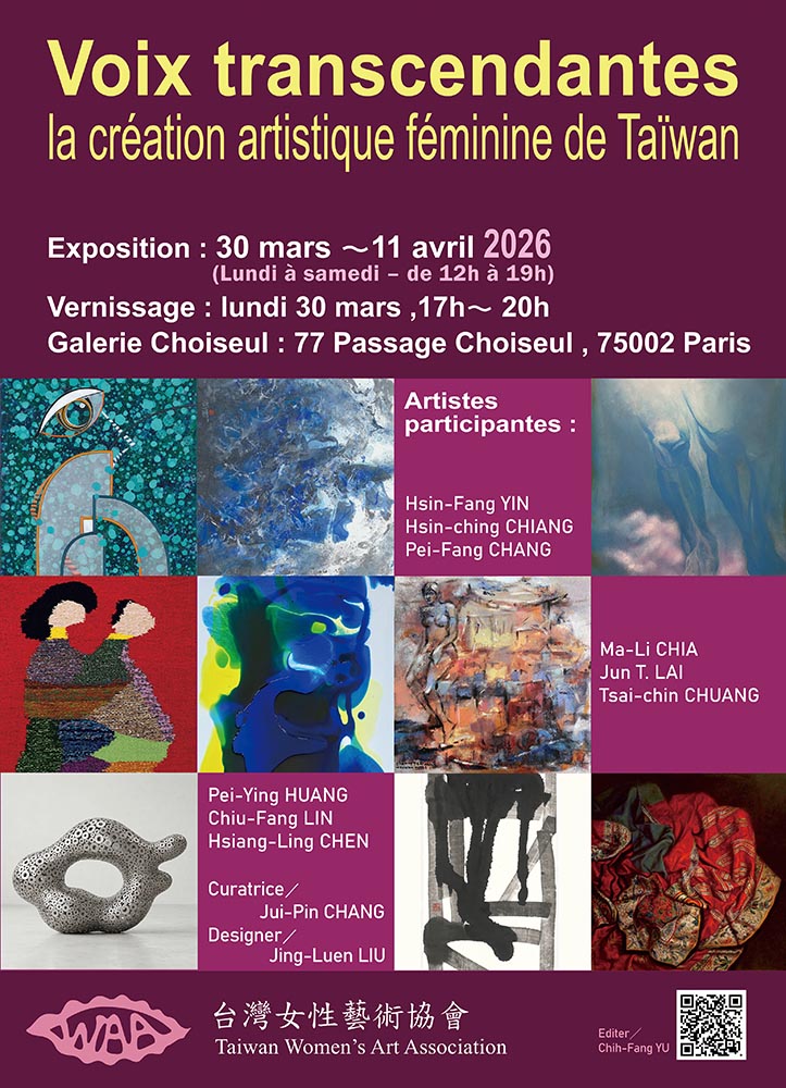 The Taiwan Women’s Arts Association is invited to exhibit works by nine female artists at the Galerie Choiseul in Paris.